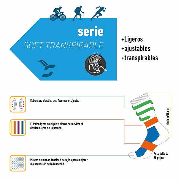 El calcetín de altas prestaciones más ligero del mercado. Perfecto para su uso en entrenamientos exigentes y prolongados. Diseñado para climas moderadamente cálidos y cálidos. Altura 18cm.